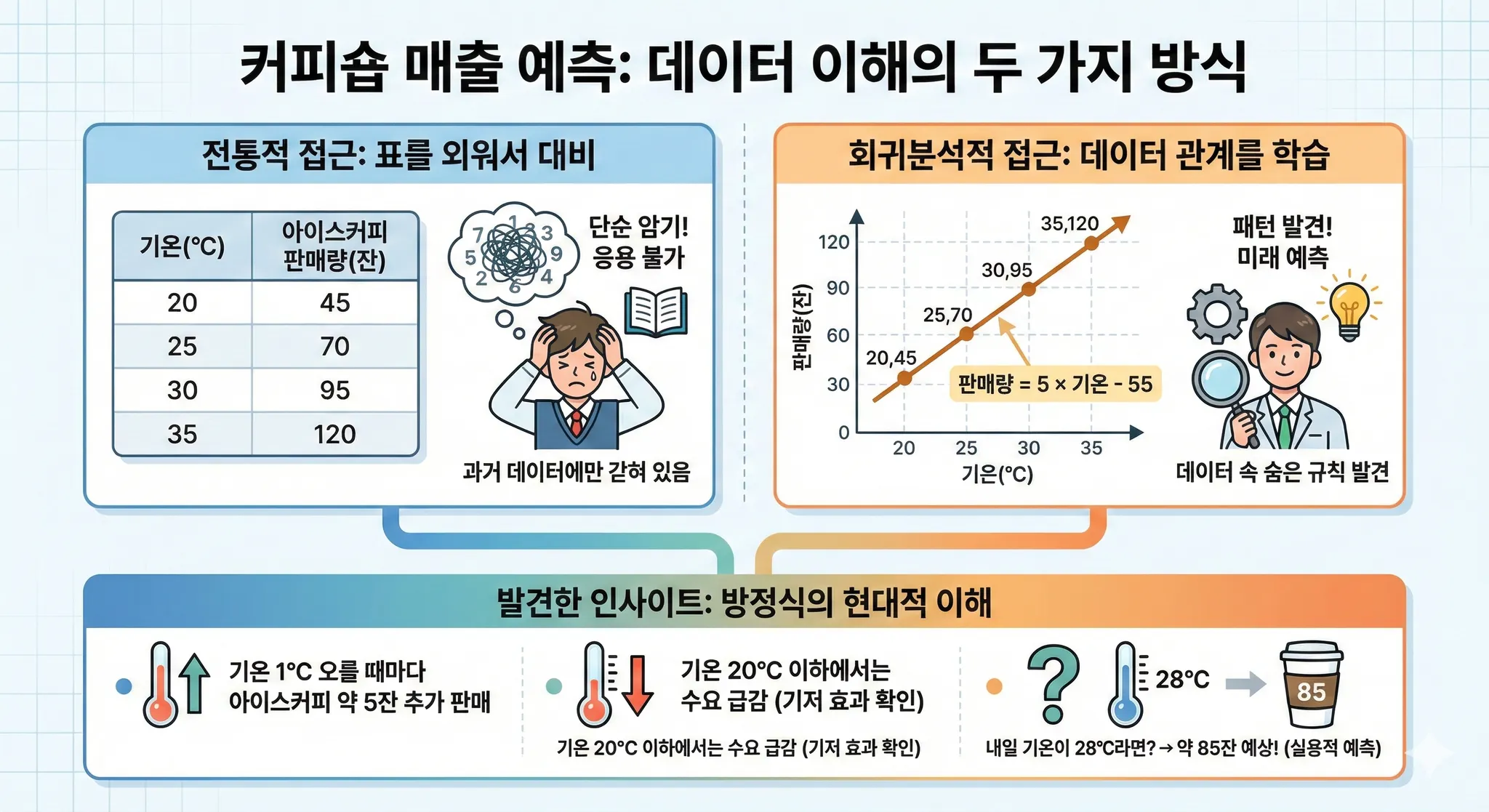 내일 기온이 28°C라면? → 약 85잔 예상