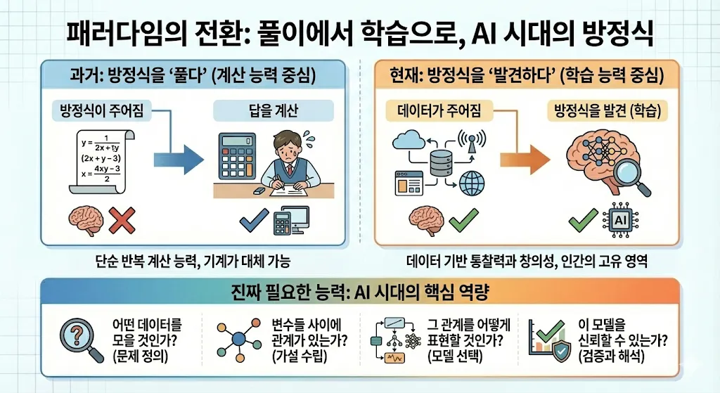 AI 시대에 중요한 건 방정식을 푸는 능력이 아닙니다. 그건 계산기가, ChatGPT가, Excel이 1초 만에 해결합니다.