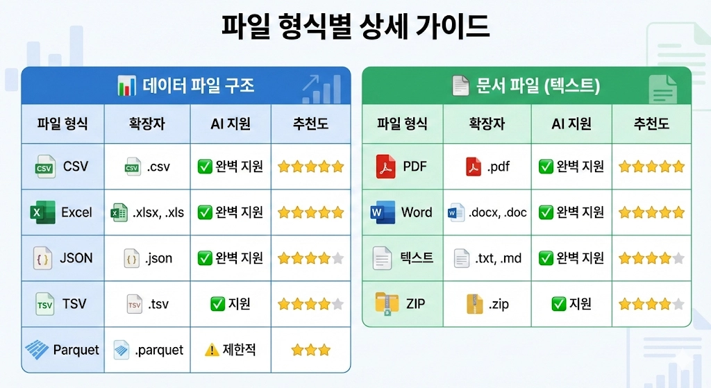 키워드: CSV 파일 분석, Excel AI 분석, JSON 데이터, Parquet 파일, AI 데이터 시각화