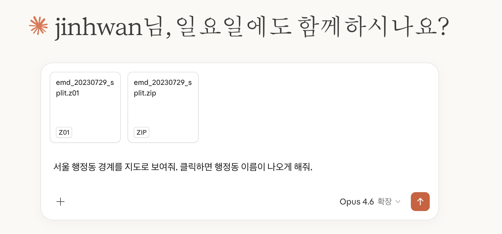 국가공간정보포털에서 파일 받아 → Claude에 업로드 → 원하는 지도 설명 → 완성