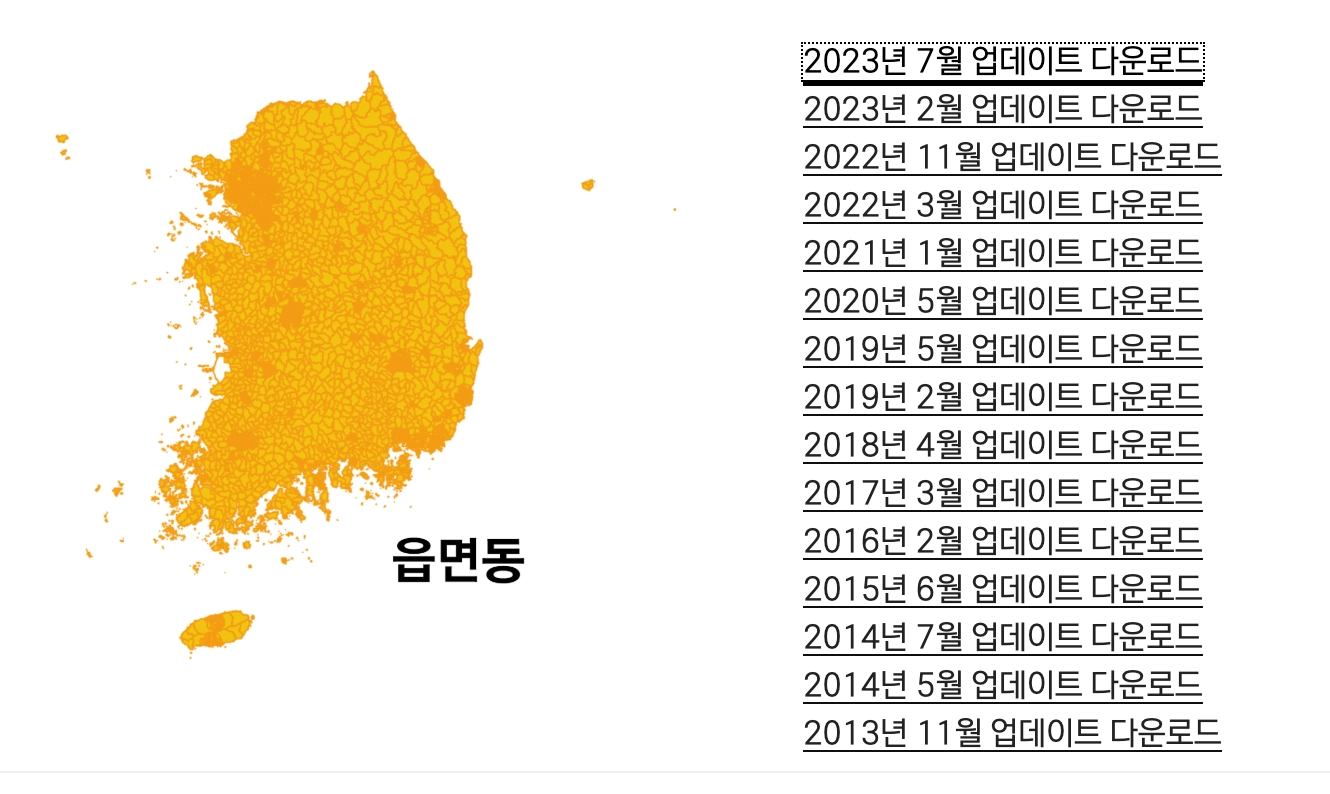모두 무료로 다운로드할 수 있습니다. 검색창에 "행정구역 shp" 또는 "shapefile"로 찾으면 됩니다.